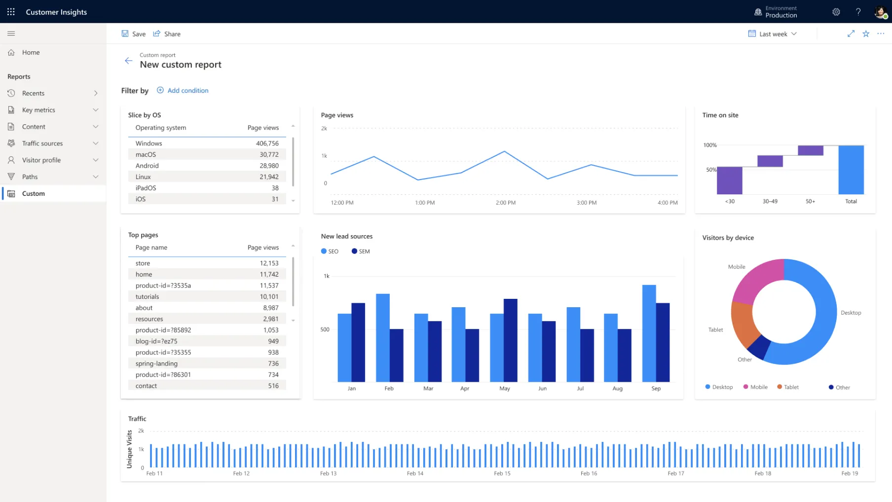 Dynamics 365 Customer Service Insights te permite conocer el comportamiento del cliente en tu sitio web y/ app móvil para optimizar el recorrido en varios canales; así mismo, te permite predecir las necesidades de tus clientes extrayendo conocimientos útiles con modelos de IA prediseñados.