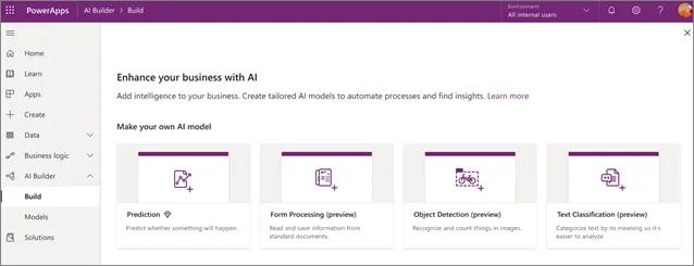 AI Builder es una nueva capacidad de Power Platform para equipos con experiencia empresarial que les permite automatizar fácilmente los procesos y predecir resultados para mejorar el rendimiento empresarial.